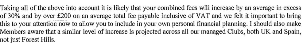 It details that their other managed clubs in the UK and Spain will experience similar increases.